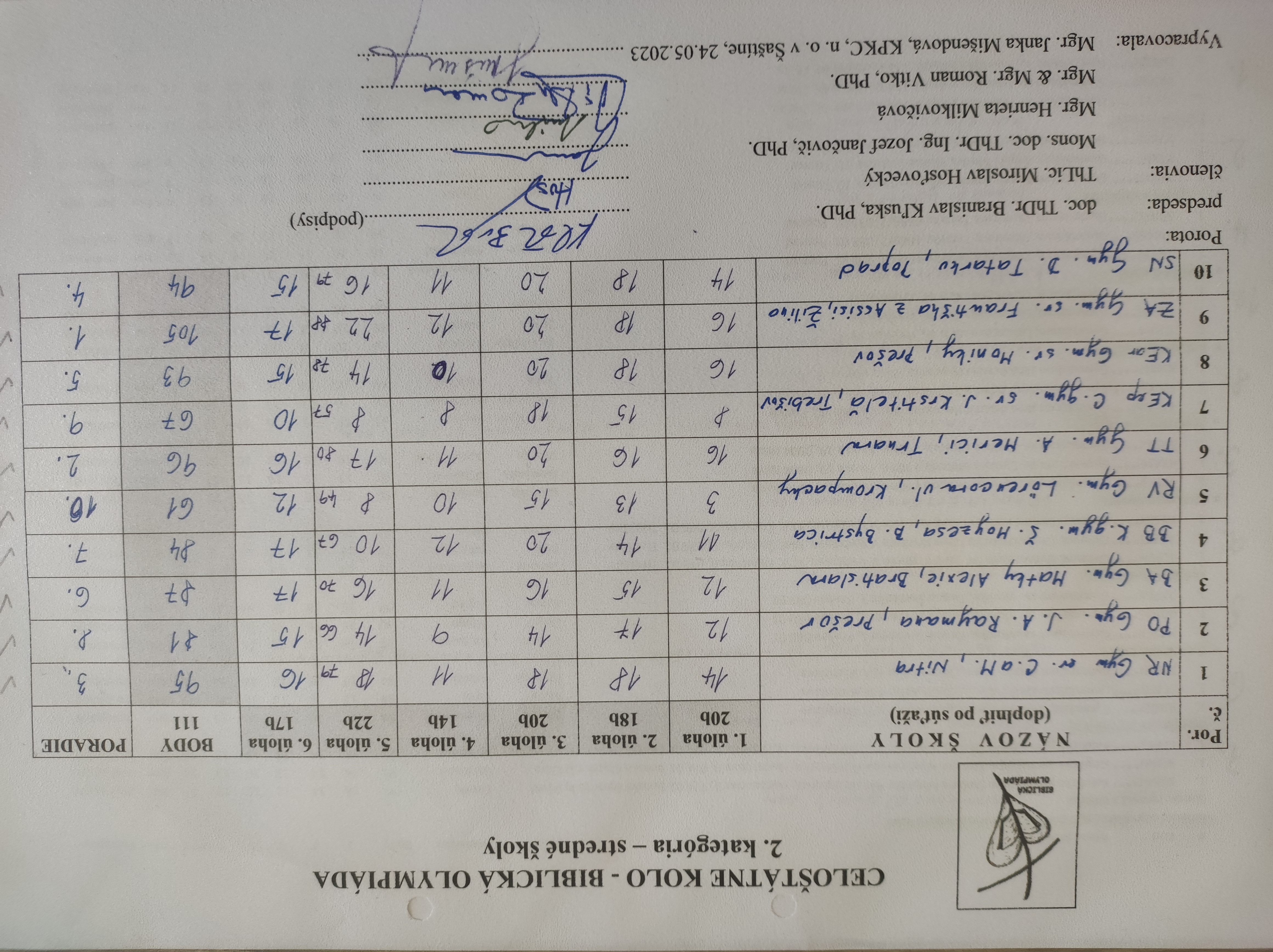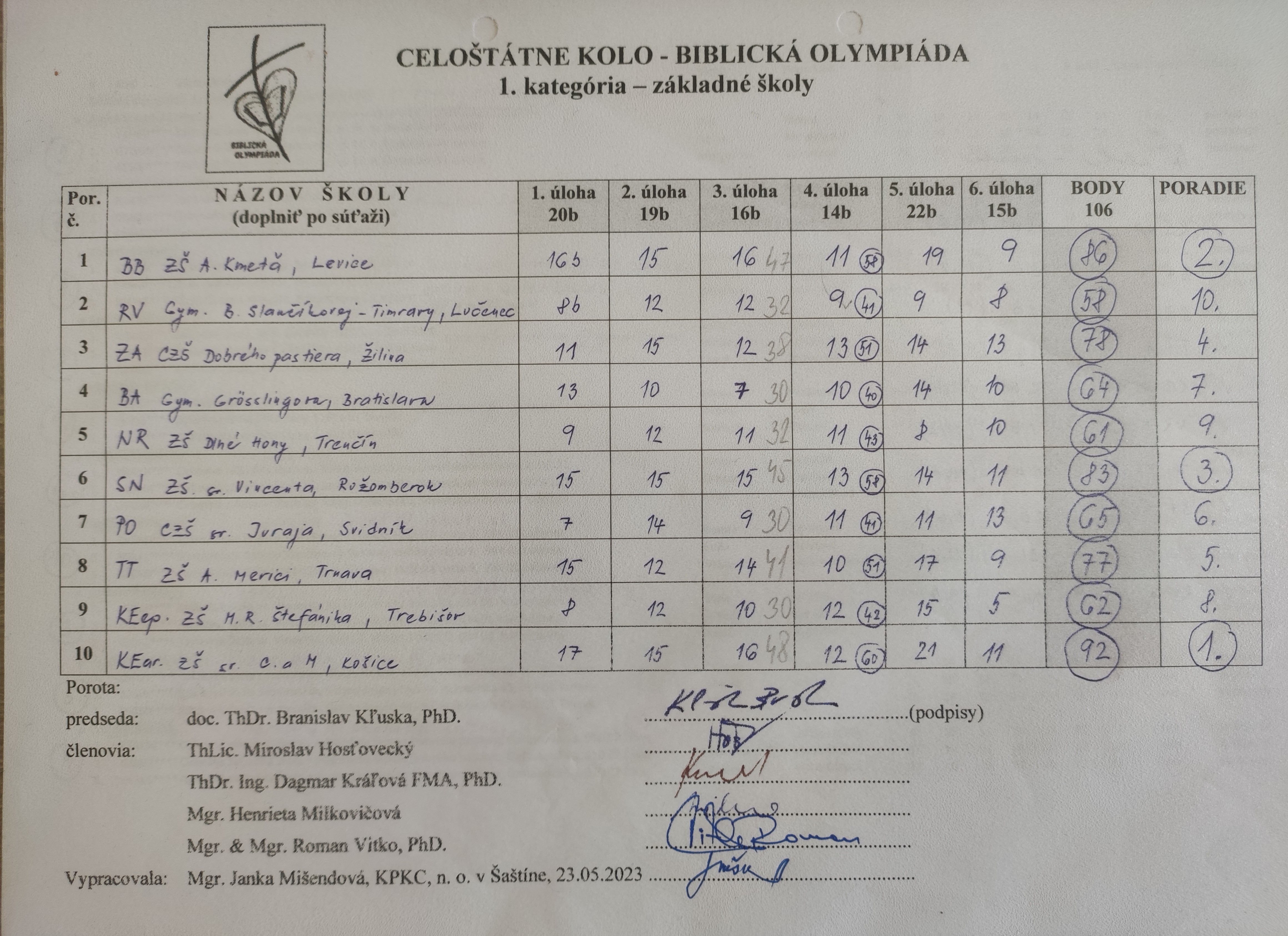 25.4.2024 - Výsledková listina "Biblia očami detí"